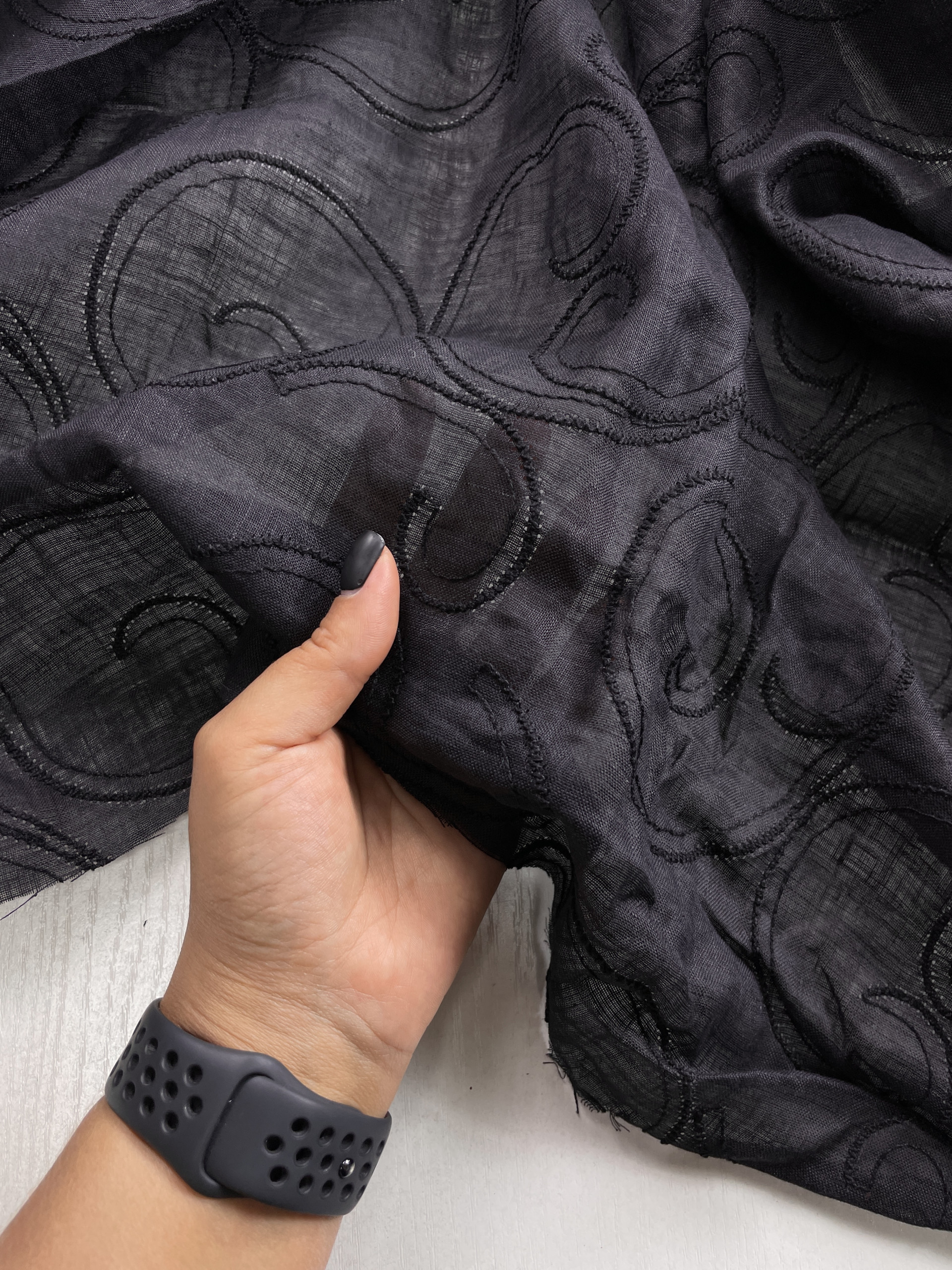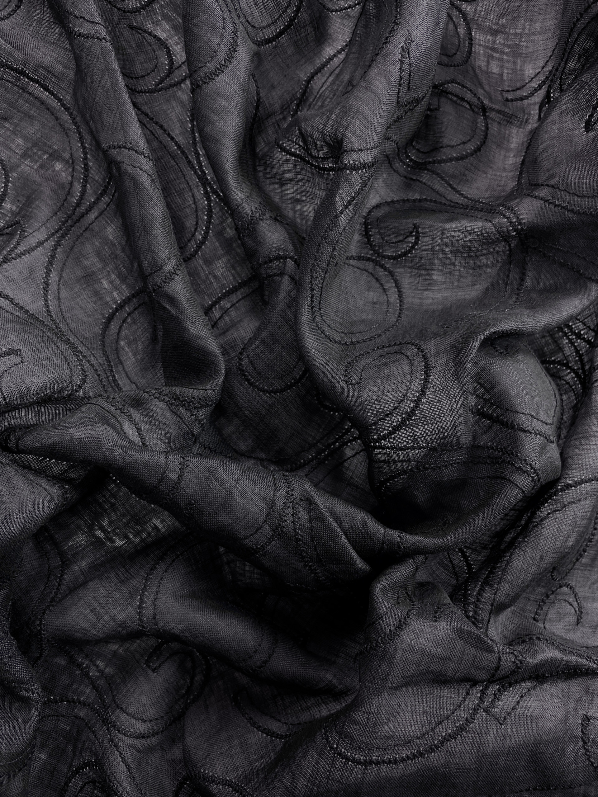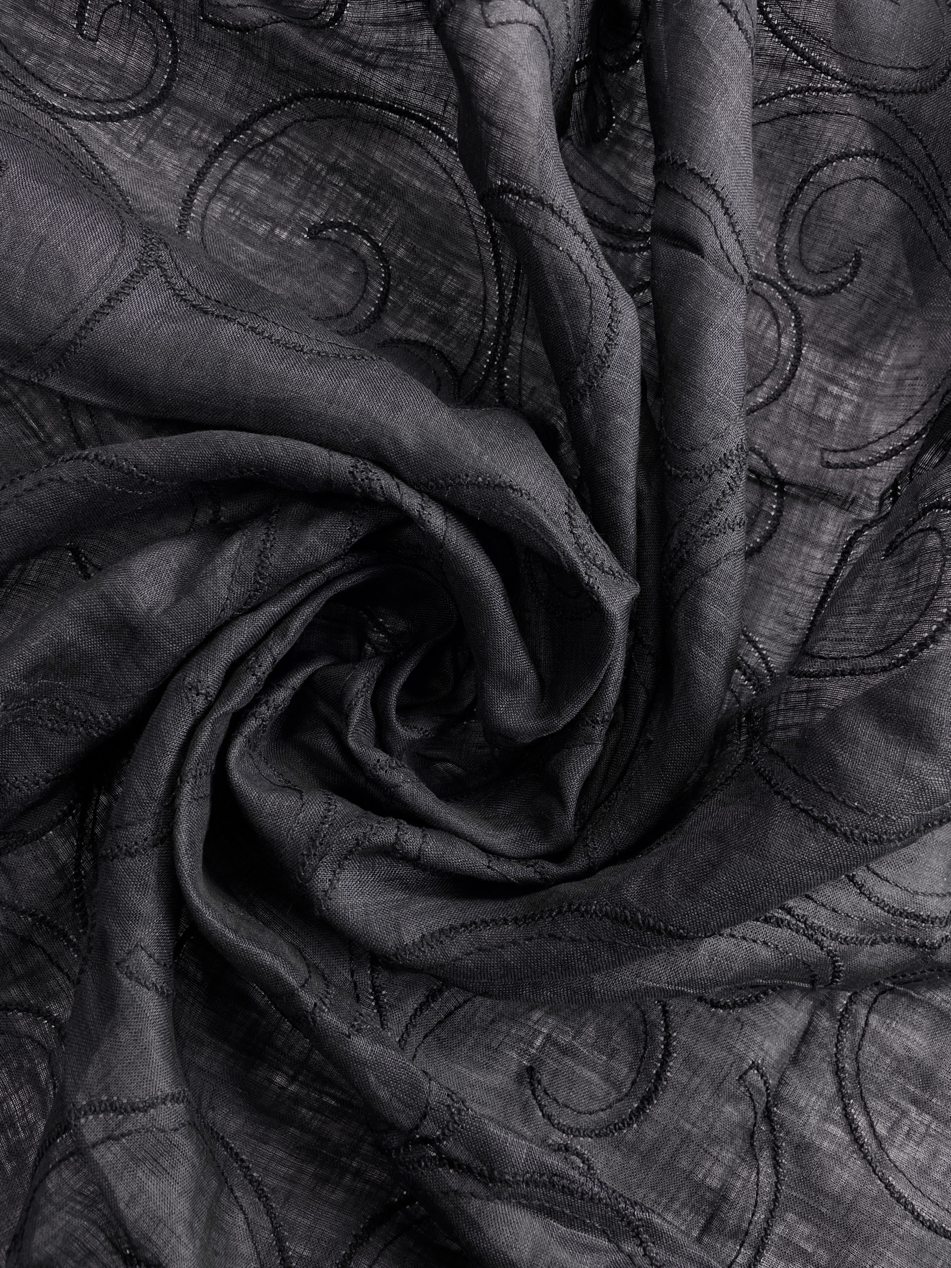 Ткань лен с вышивкой черного цвета 2,2 м