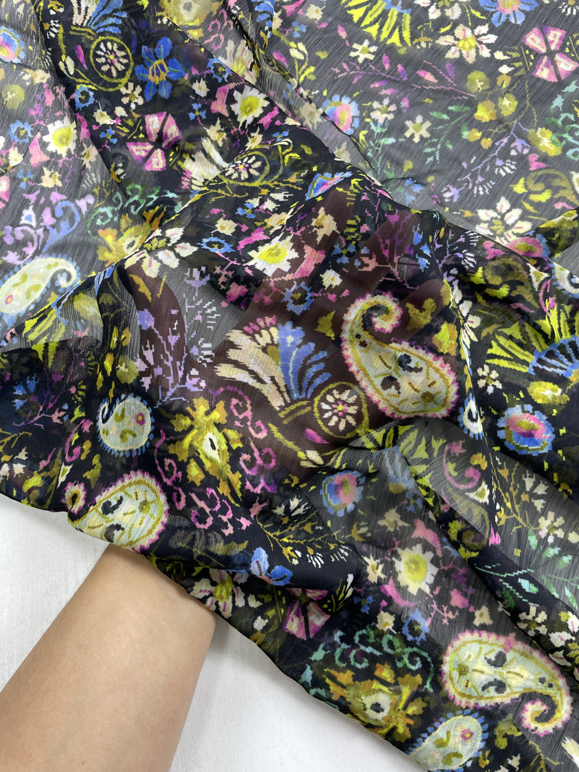 Ткань шифон жатый с ярким принтом