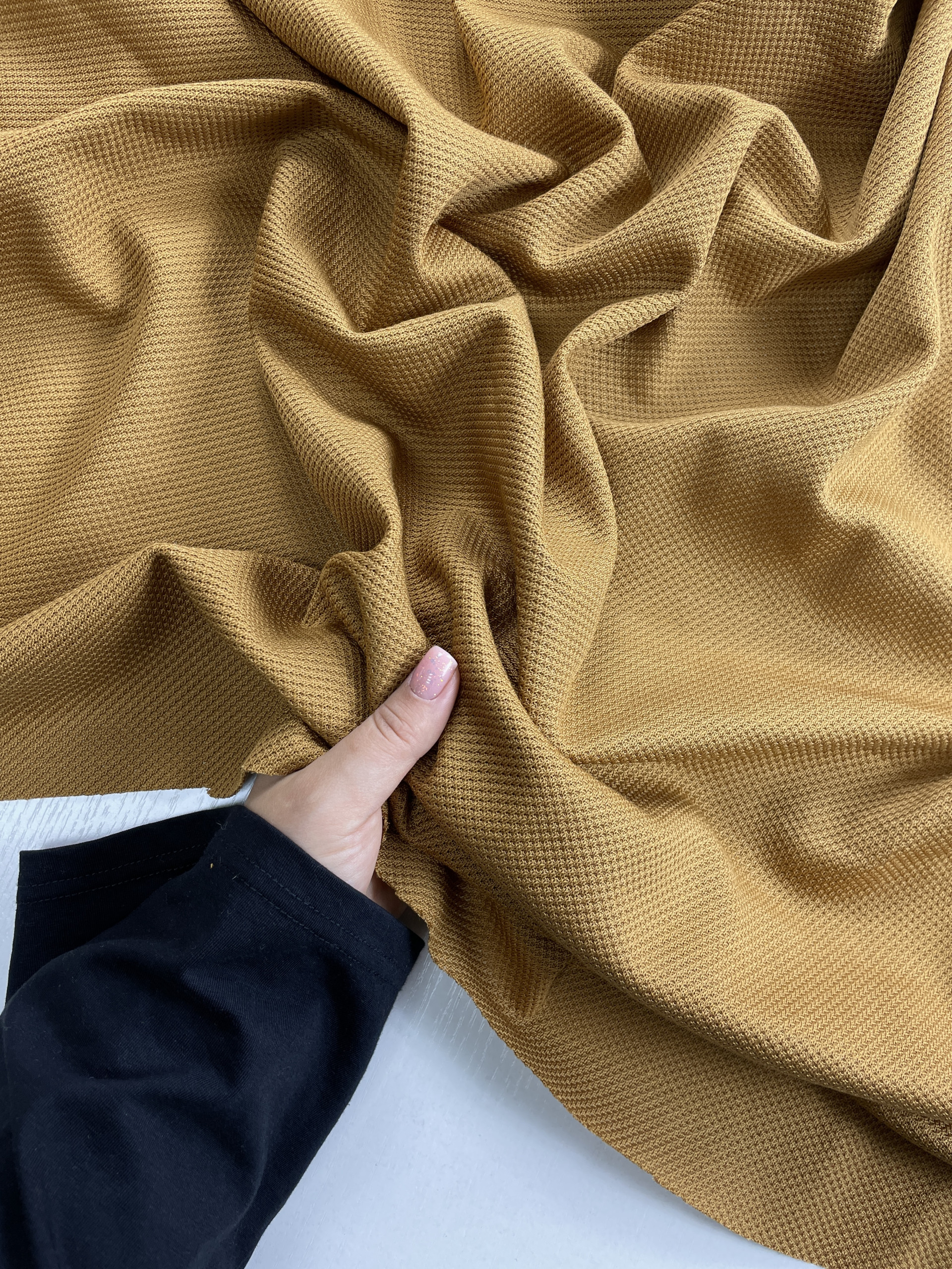 Трикотаж льняной цвета охра